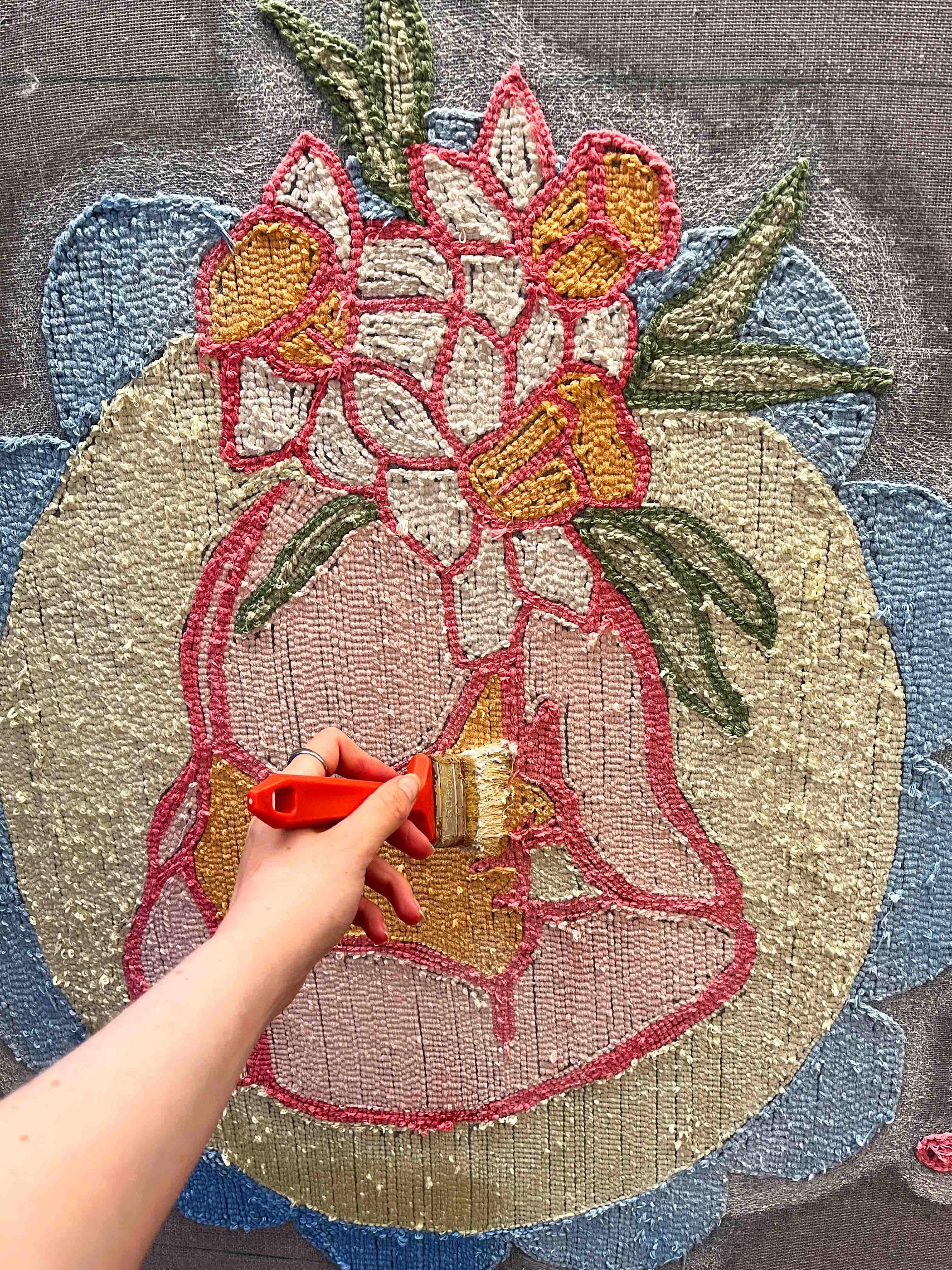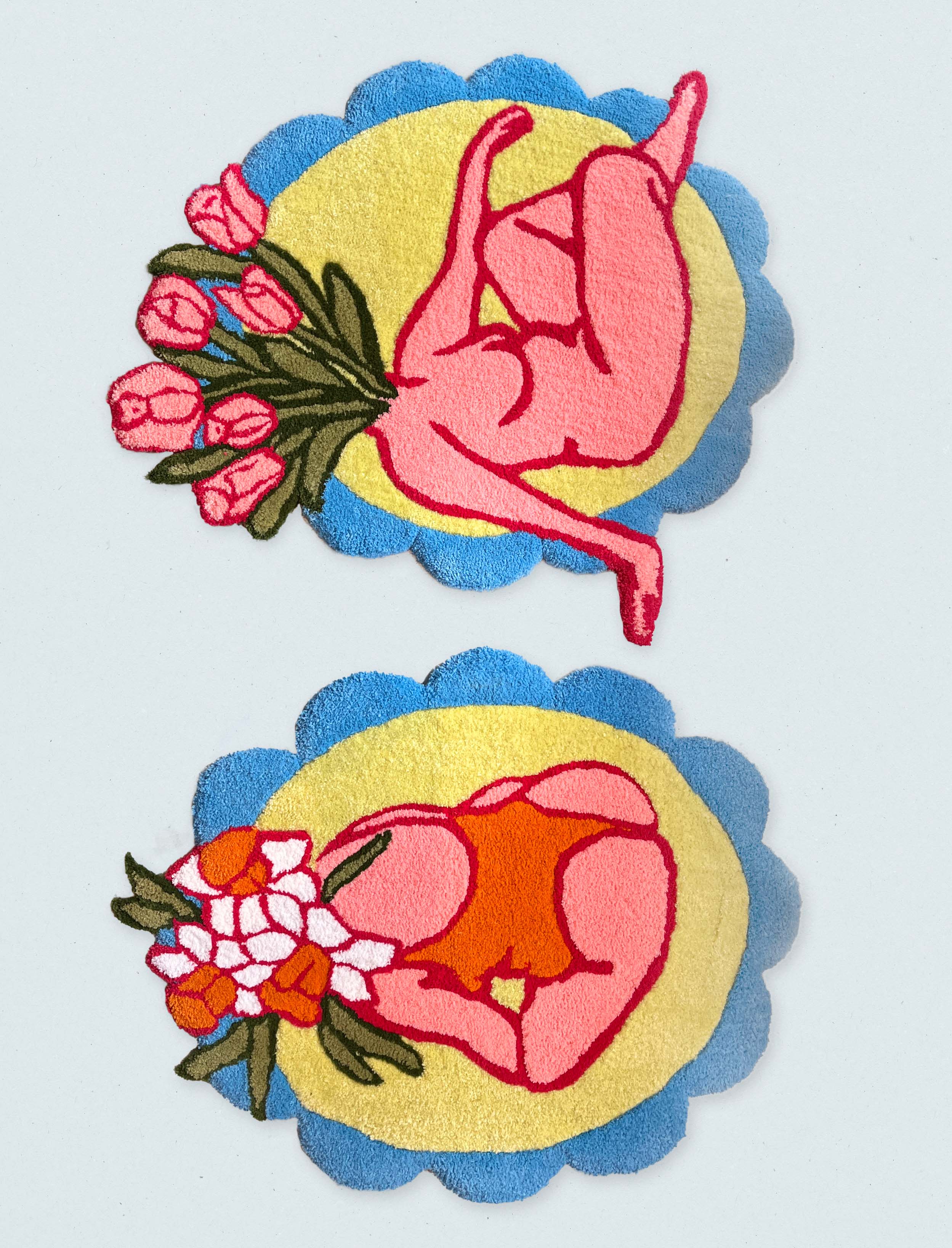Het werk ‘Floral Femininity’ is een wandkleed dat ik tijdens mijn stage heb gecreëerd met de prachtige tuft-techniek. Dit design, gemaakt voor de etalage van Shaggies Amsterdam, straalt warmte uit en symboliseert de overgang van koude dagen naar een periode van meer warmte, gezelligheid en comfort. Terwijl de natuur tot bloei komt, herontdekt ook de mens zijn levendigheid en bloeit opnieuw op.