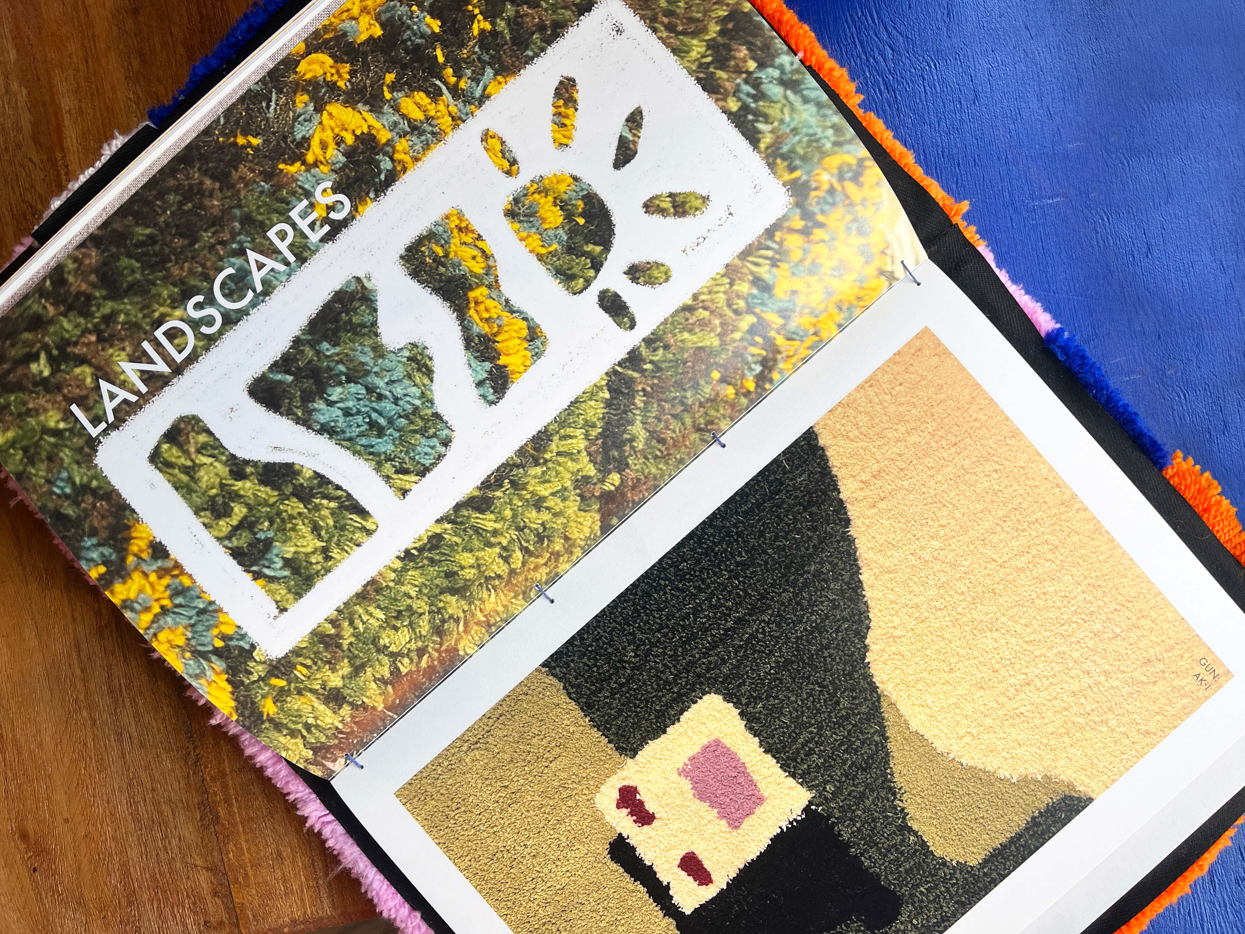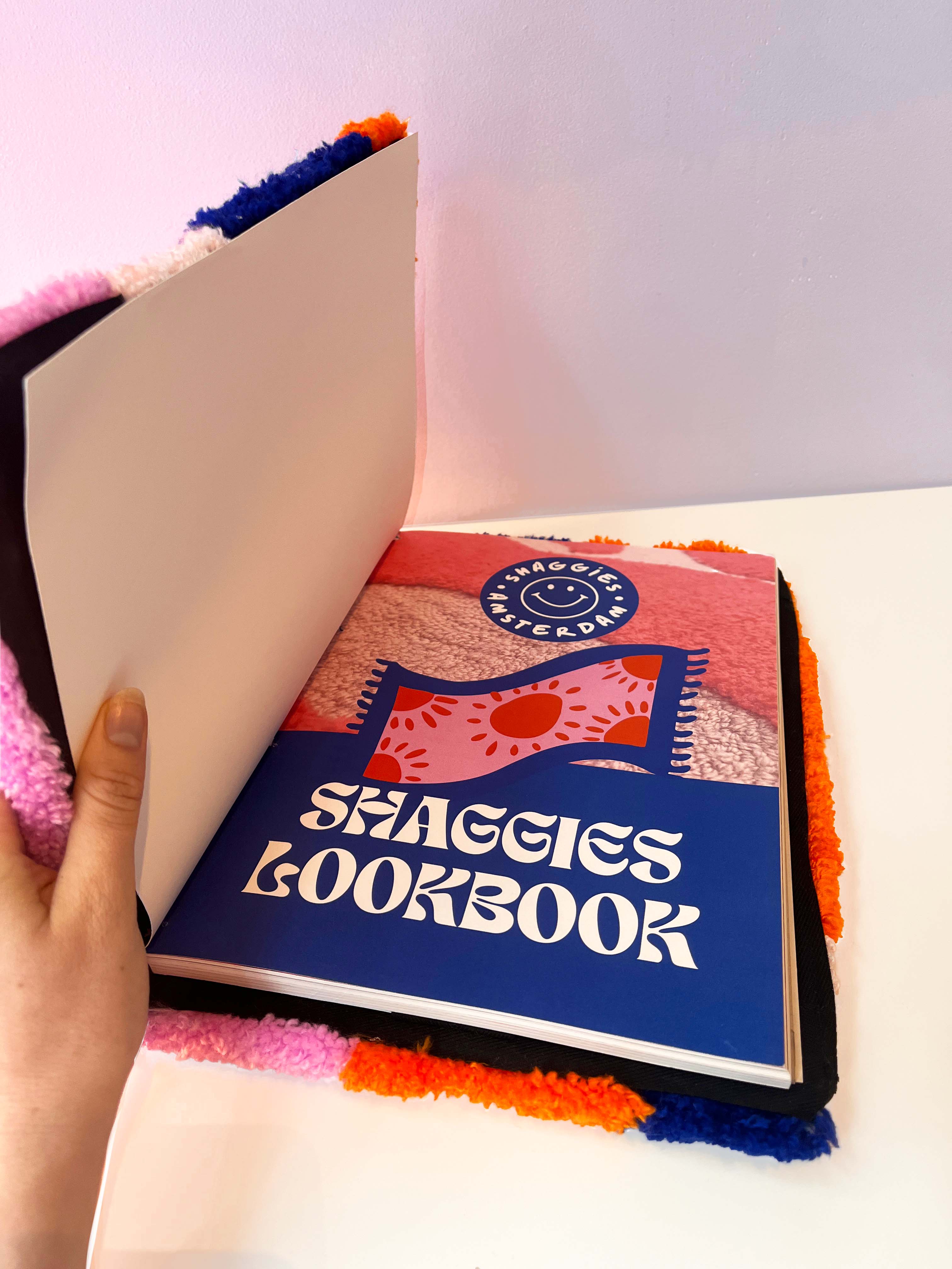 Ter ondersteuning van de workshops heb ik een lookbook van begin tot eind mogen creëren. Dit helpt cursisten een beter beeld te krijgen van de mogelijkheden tijdens een workshop. Het lookbook omvat talloze voorbeelden van kleden die door eerdere cursisten zijn gemaakt. Natuurlijk is de cover van het boek getuft, zodat het een passende uitstraling heeft die volledig aansluit bij de inrichting van Shaggies. Het combineren van een voor mij nieuwe techniek met een vertrouwde techniek was een ontzettend leuke uitdaging!